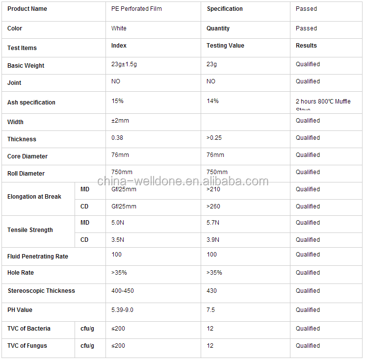 Application:Topsheet of sanitary pads