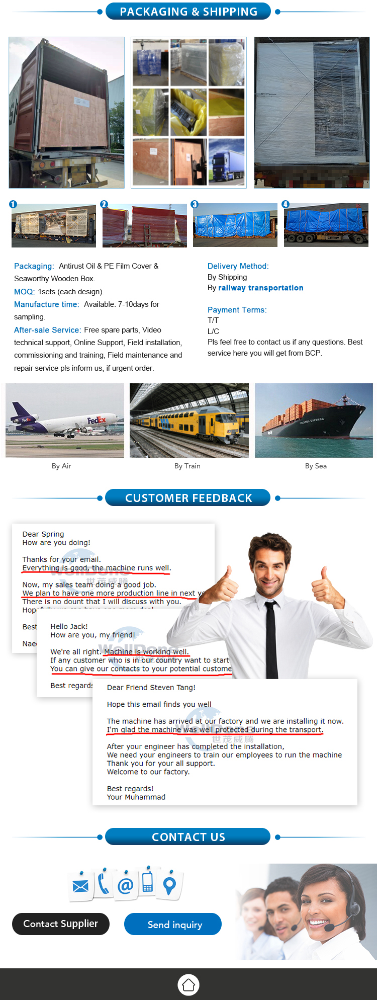 Послепродажное обслуживание: Инженеры доступны для обслуживания оборудования за рубежом